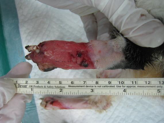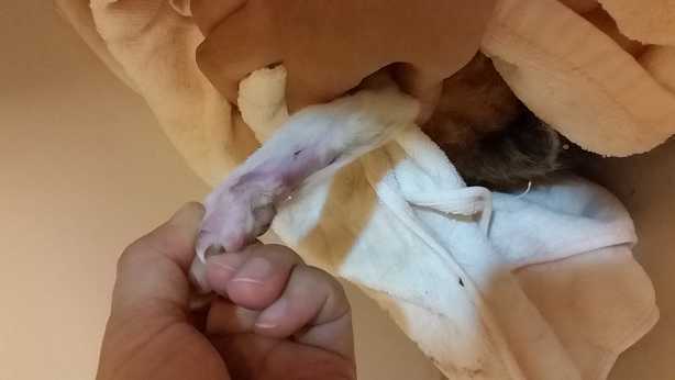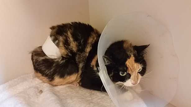 主題: 後腿重傷見骨三花 申請者姓名: 曾紀芸 花色: 申請日期: 2015-06-21 21:43:18 申請者部落格: 申請者臉書網址: 所在縣市/合作醫院: 台北市/內湖維康動物醫院 治療費用: 55200元 需求人數: 58人 已結案 (2022-03-11 00:09:35) 報名人員: Po-Lin Chen x2(已付款)、坑長(已付款)、安久貓(已付款)、Monica Chan(已付款)、陳小茜 x2(已付款)、dolce(已付款)、Irena x3、荊棘零希(已付款)、Chopper Yang(已付款)、Jasmine Lin(已付款)、徐南西(已付款)、仔仔媽(已付款)、徐、Sylvie(已付款)、Olive Guan(已付款)、三重優美膚診所 x2(已付款)、Wen Liao(已付款)、Vivian(已付款)、Patrick x2(已付款)、Catbask(已付款)、佩佩(已付款)、Mia Jheng、Mia Jheng(已付款)、橘子、Sunny Lee x2(已付款)、snoopypeggy(已付款)、Andree Huang(已付款)、帥哥(已付款)、Jill(已付款)、陳盈君(已付款)、Pinwin(已付款)、Fan(已付款)、余拼咕(已付款)、Daniel Tsai x3(已付款)、Mickey Han(已付款)、Wei-Ling Chang(已付款)、眼睛(已付款)、何偉靖(已付款)、劉玉婷(已付款)、chun(已付款)、徐阿悟、Bella Chen(已付款)、幽(已付款)、李庭芝(已付款)、頭頭媽(已付款)、銀貓貓(已付款)、Irena x3(已付款)、Doris Purple(已付款)、Yapin(已付款)、Joba Huang(已付款)、Emily Yen x2(已付款)、a-song(已付款)、Vivian Chen(已付款)、Patrick x2(已付款)、 候補人員: 動物病情說明: 20150401發現三花傷貓,兩後肢皆受傷,左後腿下半肢外觀發黑僵硬,右後腿腳踝及腳掌有外傷,四月初天氣已逐漸變熱,擔心傷口拖延太久,恐引發敗血症等危及貓咪生命的狀況,決定盡速誘捕就醫,原來還算親人的三花,受傷後警戒心極強,幾次都誘捕失敗,終在20150406凌晨誘捕成功,通報協會尋求醫助。並於150406當日至協會合作醫院-維康動物醫院就診。 動物近況說明: 三花住院初期,因血檢結果暫不適作手術,因此醫師先給予營養支持、施打抗生素,以及傷口清創敷藥。後因傷口自行癒合狀況還算良好,在不增加貓咪負擔的狀況下,先讓貓咪好好休養,約二至三天換藥一次,但三花非常警戒,每次都需兩個人才能重新將傷口清潔上藥。此後傷口狀況都恢復不錯,直至五月下旬,癒合進度漸不如預期,因此在0528進行皮瓣手術,0620醫師檢查傷口狀況OK,雖然還有一小部份還沒完全復原,要完全復原大約需再二個星期左右,但已可以不用清創上藥,評估過後,通知可接回休養。目前三花接回後,因傷口還沒完全復原,且仍緊張怕人,所以暫置於三層貓籠裡,限制活動空間,避免傷口有變,等她完全康復,情緒也較放鬆之後,將進行送養。