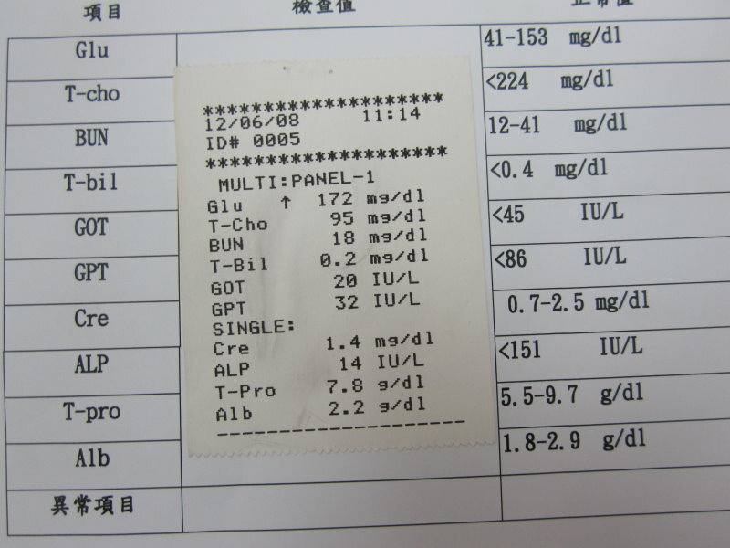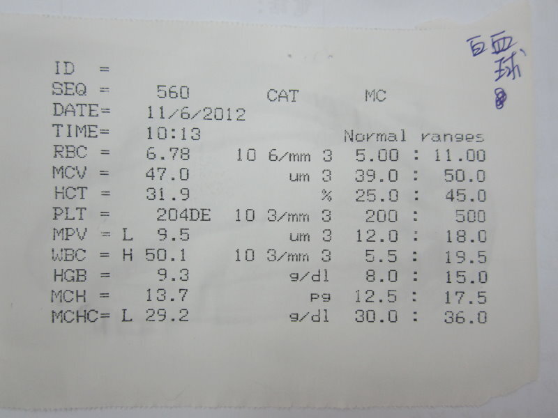 主題: 嚴重感染白血球八萬 申請者姓名: 蔡秀慧 花色: 申請日期: 2012-07-12 13:39:14 申請者部落格: 申請者臉書網址: 所在縣市/合作醫院: 台北市/欣旺動物醫院 治療費用: 11400元 需求人數: 26人 已結案 (2012-12-01 22:00:30) 報名人員: Angela(已付款)、won889(已付款)、陳小美(已付款)、Vickey Chang(已付款)、LULU(已付款)、Dolphin(已付款)、kay(已付款)、賴珮君(已付款)、塔羅貓(已付款)、Rayla Lin(已付款)、Benjamin(已付款)、Gina Tsai(已付款)、衣服(已付款)、天野蔦(已付款)、Amber(已付款)、GiGi Su(已付款)、郭耿毓(已付款)、Miao Lin(已付款)、purism(已付款)、kelly(已付款)、YenJu Pen(已付款)、Nancy(已付款)、Chenyu Chang(已付款)、Liyun Chang(已付款)、李文惠(已付款)、阿呆的媽(已付款)、 候補人員: Elie Huang、小舟、 動物病情說明: 已結紮剪耳的白底虎斑母貓,消失數日,愛心媽媽呂阿姨十分焦急,昨天晚上邀集朋友幫忙尋找,終於找到這隻貓,瘦了一大圈,口鼻有分泌物,血檢為愛滋貓,並非愛滋發病,白血球八萬,上點滴灌食之後血檢從八萬降為五萬,住院三周血檢數值正常,精神食慾胃口恢復許多,已出院由呂阿姨照顧後回置。