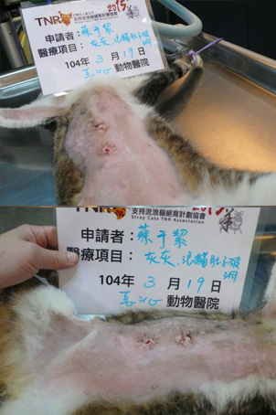 主題: 肚子破洞的浪貓-灰灰 申請者姓名: 蔡于絜 花色: 申請日期: 2015-04-21 13:27:35 申請者部落格: 申請者臉書網址: 所在縣市/合作醫院: 台北市/長沁動物醫院 治療費用: 26048元 需求人數: 29人 已結案 (2022-03-11 00:09:28) 報名人員: Peipei Cheng(已付款)、俋思國際有限公司(已付款)、花小二(已付款)、林子婷(已付款)、Jin Lee(已付款)、Anthony Huang(已付款)、貓貓(已付款)、FiFi(已付款)、Becky Chiou(已付款)、vivian(已付款)、Cynthia Wang、草莓(已付款)、Mai Chuang、邱惠卿(已付款)、高永顗(已付款)、Death(已付款)、阿毛、Tinas(已付款)、Chloe(已付款)、Janett Wang(已付款)、Lion Liu(已付款)、Jack Wei x2(已付款)、Dina(已付款)、曾嬿蓉(已付款)、Queenie(已付款)、張卉欣、陳小茜(已付款)、栢愷國際有限公司(已付款)、Nana Huang(已付款)、Tetsu x2(已付款)、點心(已付款)、 候補人員: Pei Ci、羽毛、 動物病情說明: 灰灰是我餵養的流浪貓之一,生活在工業區。