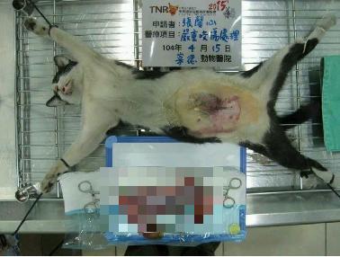 主題: 被狗咬傷的懷孕貓 申請者姓名: Shin Zhang 花色: 申請日期: 2015-04-23 00:55:40 申請者部落格: 申請者臉書網址: 所在縣市/合作醫院: 台中市/崇德動物醫院 治療費用: 5550元 需求人數: 12人 已結案 (2021-06-03 00:07:20) 報名人員: Nina Chiu、吳孟潔(已付款)、Sarah x2(已付款)、林美伶(已付款)、Wei Lin(已付款)、Queenie Chang(已付款)、王撐撐、徐大寶、Elaine(已付款)、Elaine(已付款)、Iris(已付款)、林芸芸(已付款)、王淑珍(已付款)、小琪(已付款)、 候補人員: 動物病情說明: 4/15大半夜,聽到外面的狗叫聲和悽慘的貓叫聲,我出去看是一隻貓被一隻流浪狗咬,我拿東西嚇阻他,他才放下嘴上的貓!貓咪送醫後,醫生檢查,是一隻懷孕的母貓,子宮被狗咬破,裡面的小貓通通死了,緊急做引產及絕育,還有處理外傷,但情況不太樂觀,貓咪已經大量失血。 動物近況說明: 貓咪撐了1天,隔天就過世了,連同寶寶們都沒有救活...非常傷心難過,咪咪的最後一程希望大家慷慨解囊,謝謝協會和捐款的網友們