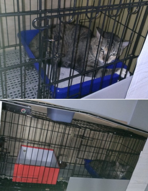動物近況說明: 虎咪已接回家中休養,適應狀況良好,吃喝正常,些微緊張,日後會尋找認養人,目前先在家關籠隔離中。