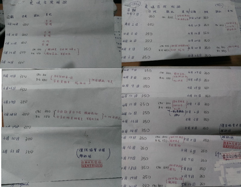 4/25白血球降~狀況較穩定,5/10已接回家調養
