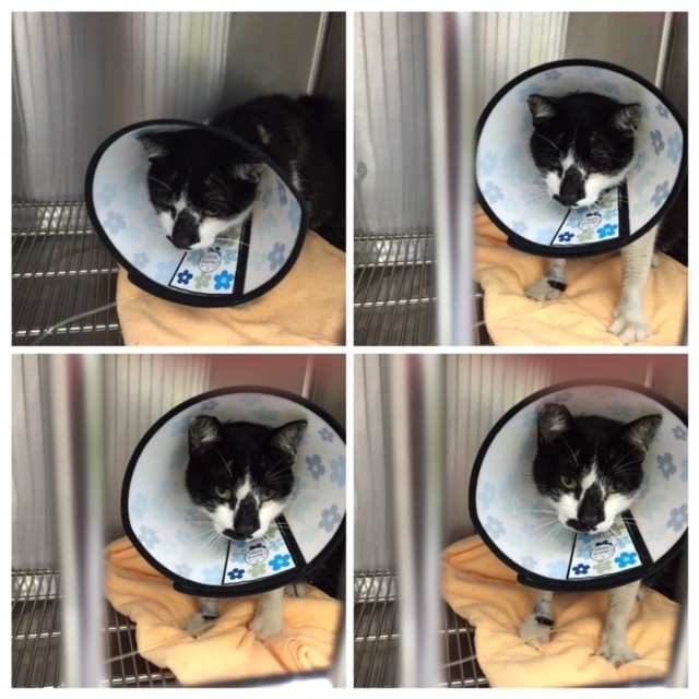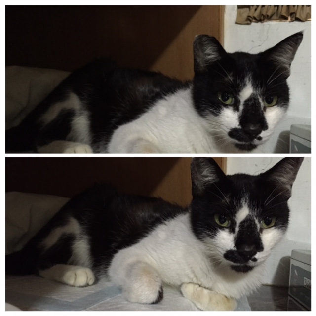幸好4/16她有出現,抓到後先去附近醫院治療,醫生說她有發燒,先打針吃藥治療並找地方隔離,打完針後可能比較舒服有稍微吃一咪咪,4/17去照顧餵藥並給她平常愛吃的罐頭,居然還是不吃,我想應該不是單純的發燒而已,隔天送銀星作詳細檢查與治療。