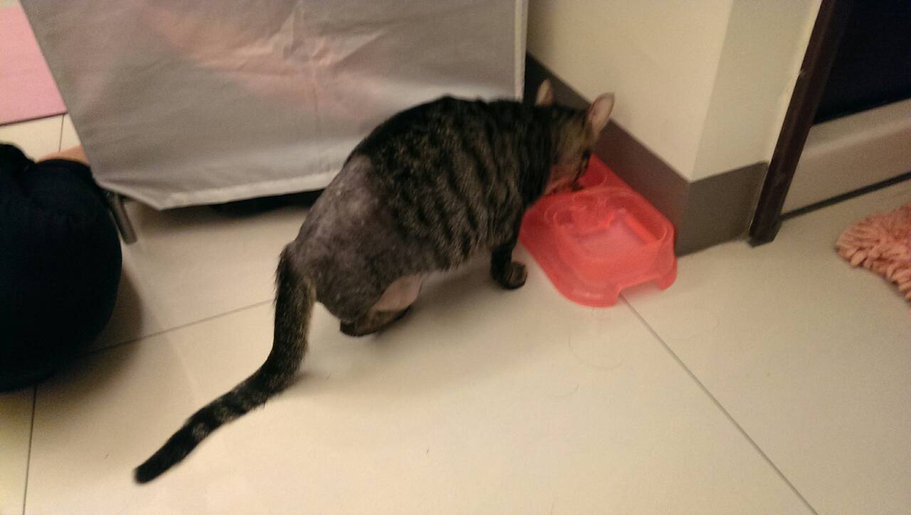 剛帶回來時,對幸福來說這是一個新的環境,幸福住進來的前幾天,一開始不吃東西,我們和杜犬貓專科請教後,嘗試著變換食物來勾起來的食慾;可是幸福在二天後開始進食,但卻仍然沒排便。於是我們想起在住院期間,醫院為幸福準備的貓沙,我們就半夜緊急去買同樣的貓沙。隔天;牠終於排便排尿了,讓我們鬆了一口氣。現在幸福每天都精神飽滿的探索著家裡,半夜都會上床跟我們一起睡,食量也比之前大了二倍。