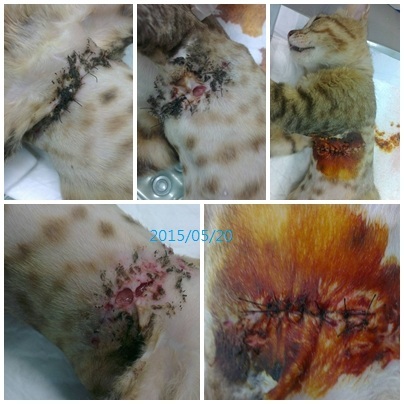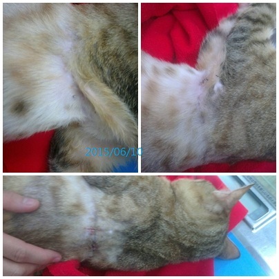 5/7日的時候 觀察傷口 將線拆除 背的傷口已經癒合得差不多