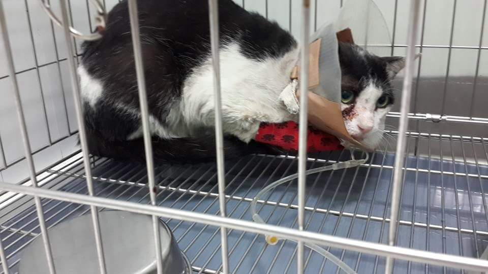 主題: 臉部腫脹傷口潰爛流血的憨厚寶貝 申請者姓名: 張婷俞 花色: 申請日期: 2015-05-14 06:44:22 申請者部落格: 申請者臉書網址: 所在縣市/合作醫院: 高雄市/樂生動物醫院 治療費用: 11900元 需求人數: 13人 已結案 (2017-01-23 15:24:59) 報名人員: carol0437、carol0437、Bonnie(已付款)、詹妹妹(已付款)、Sophia Huang(已付款)、Amanda Meng(已付款)、Gary Chen(已付款)、rainbowstar39(已付款)、吳毓軒(已付款)、呼嚕草莓(已付款)、歡歡、Huang(已付款)、miffy700215(已付款)、lavinia x2(已付款)、Annie lee(已付款)、 候補人員: 動物病情說明: 寶貝,是我在復興路跟復橫一路巷口餵養區的孩子,寶貝是一隻很憨厚溫馴的乳牛貓,4/24凌晨去餵時,發現寶貝臉部腫了一圈還流血,因為前一天餵食寶貝並沒出現,當下也沒帶任何工具,只好等隔天抓,隔天如期用罐頭誘捕,雖然沒什麼吃,可能傷口腫脹讓寶貝很痛,但成功誘捕到。