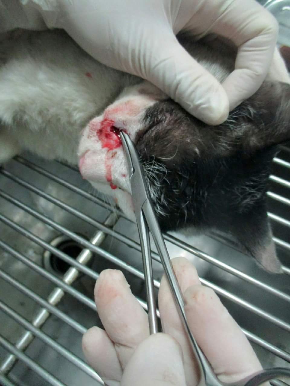 送至協會配合的樂生動物醫院醫治,醫生麻醉檢查傷口跟清創。