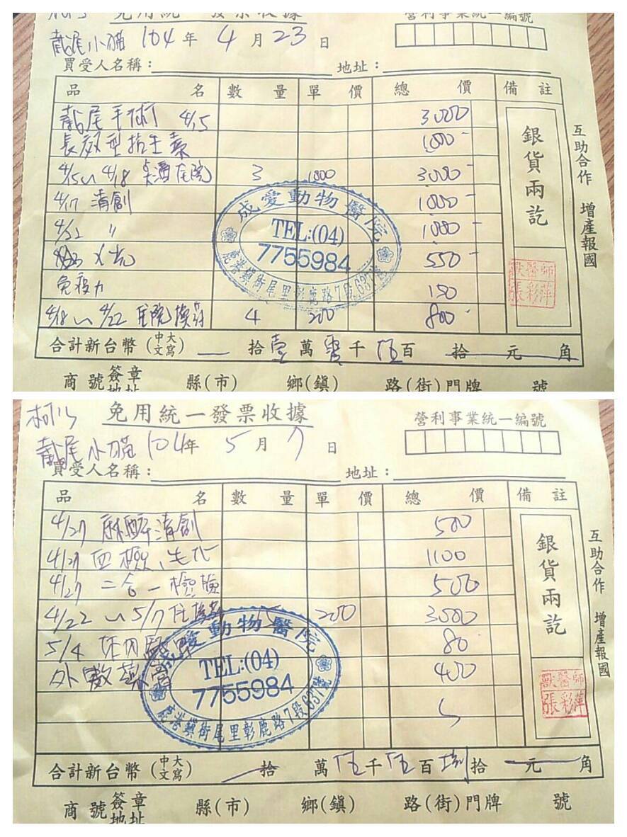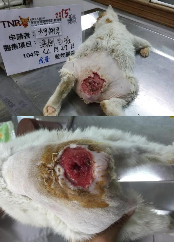 2015/5/7 由於貓咪自癒能力不佳,故辦理轉院北上就醫,,希望透過皮辦手術幫助傷口縮小復原,醫療費用第一階段16080元還請各位幫忙。