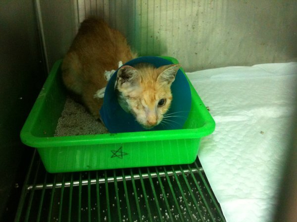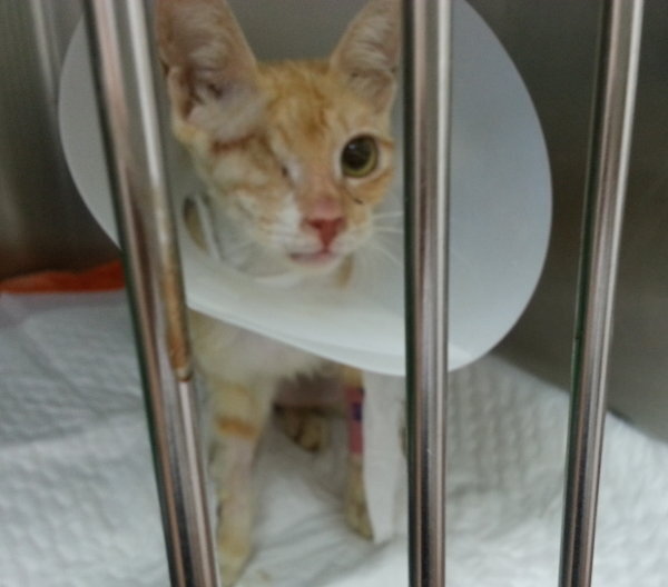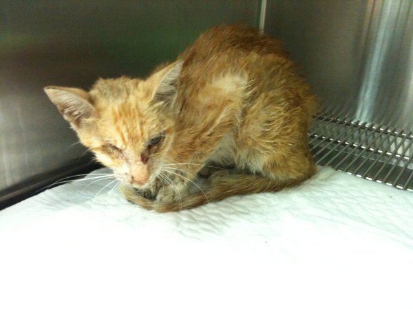 嚴重鼻氣管炎,一隻眼的眼珠已不見,