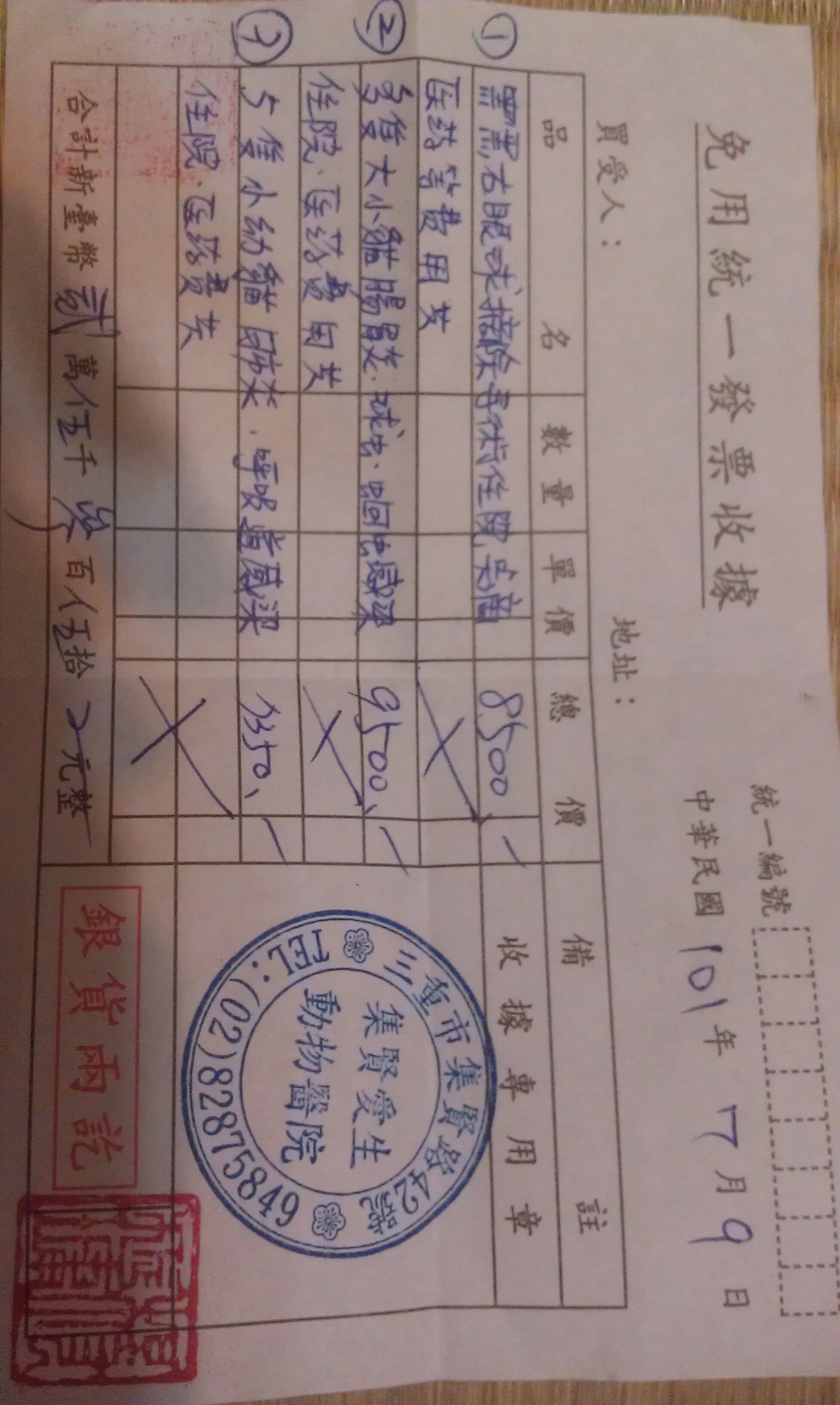 主題: 眼球感染~摘除~多隻幼貓腸胃炎,肺炎住院 申請者姓名: 葉敏 花色: 申請日期: 2012-07-13 01:27:32 申請者部落格: 申請者臉書網址: bjiouyeh@facebook.com 所在縣市/合作醫院: 新北市/集賢愛生 治療費用: 25350元 需求人數: 32人 已結案 (2012-12-01 22:01:35) 報名人員: 劉柚薰(已付款)、陳靜嫻(已付款)、邱小咪(已付款)、titan(已付款)、Ariel Chen(已付款)、小牛(已付款)、點心(已付款)、SHIN HUI(已付款)、林妮娜(已付款)、Yenjou Chu(已付款)、Hsing-hua Chang(已付款)、Sunny Tu(已付款)、琳北姓胡(已付款)、Zoe Chen(已付款)、Phoebe Wen(已付款)、潘小咪(已付款)、Kristy Lee(已付款)、貓空(已付款)、Choco Yen(已付款)、Allen Lin(已付款)、陳宏林(已付款)、candynoire、Irena(已付款)、陽光小猴寶(已付款)、Will(已付款)、跳熊(已付款)、Dai Chen(已付款)、TH Taiwan Forum(已付款)、陳喵喵(已付款)、boodan(已付款)、chiawei(已付款)、Weela La(已付款)、花媽(已付款)、 候補人員: 小舟、小舟、 動物病情說明: 接收協會通報的小貓~