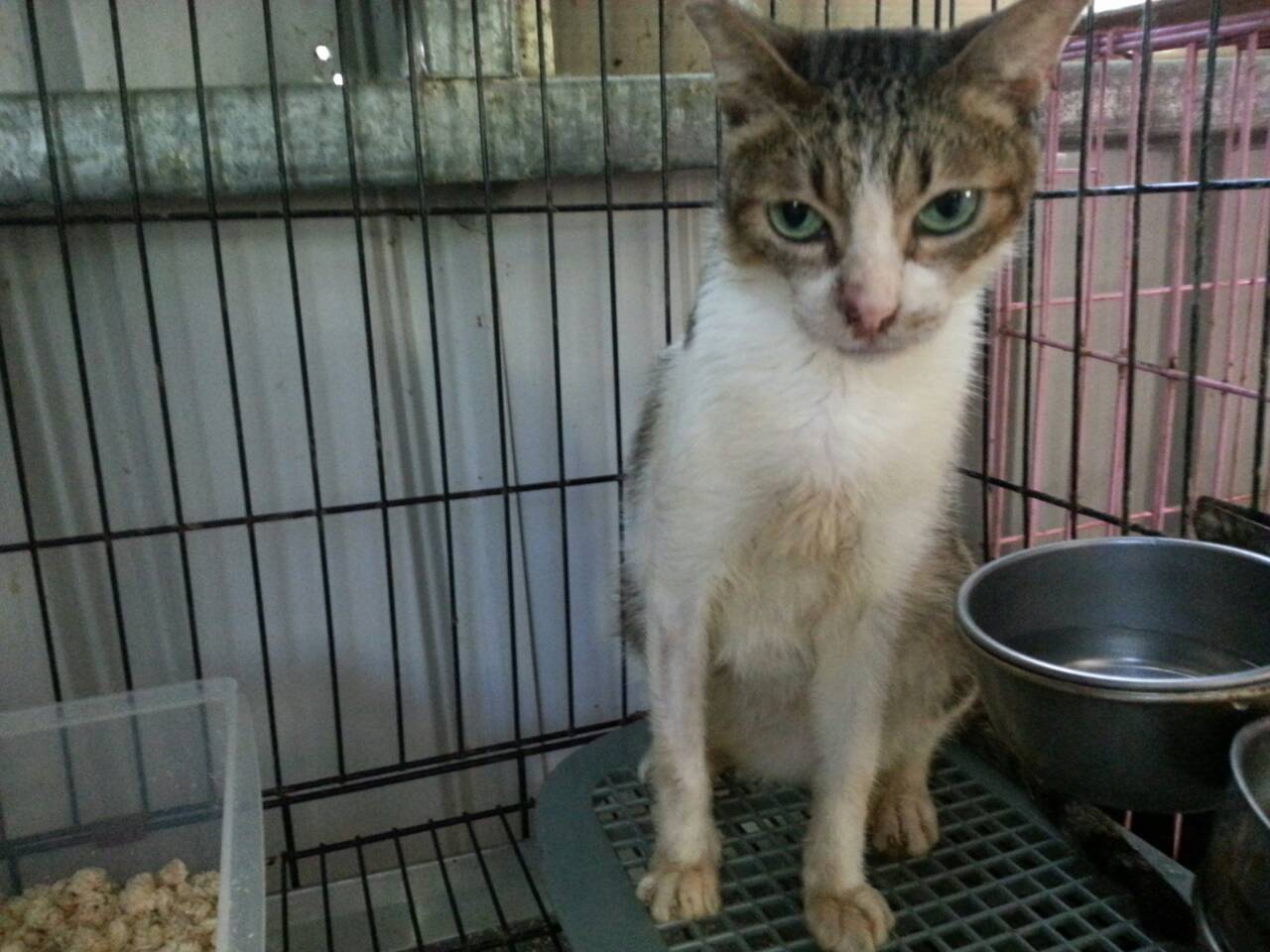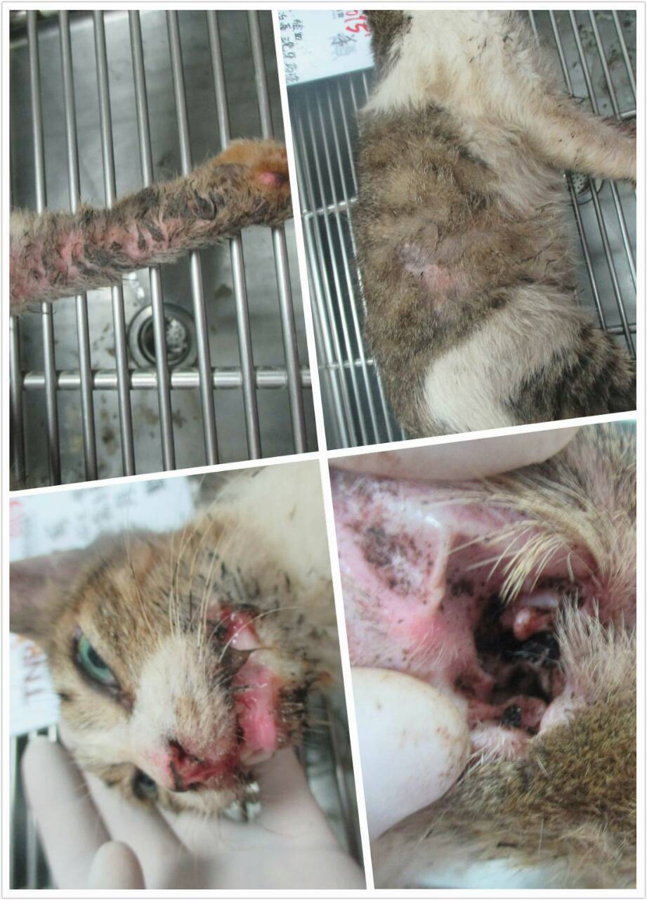 在醫院有洗澡與藥浴,住院期間耳朵也有清理,打點滴後陸續也恢復了食慾,還有氣霧治療,治療後貓咪看起來乾淨並舒服多了,目前出院,先安置再觀察陸續的狀況,因為有愛滋所以還需注意口炎狀態,感謝大家的幫助