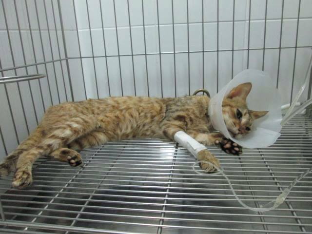 主題: 屏東縣佳冬鄉盲眼阿伯只餵不扎3天不吃不喝躲在冰箱底下的母虎斑 申請者姓名: 謝一如 花色: 申請日期: 2015-05-25 17:44:38 申請者部落格: 沒有部落格 申請者臉書網址: https://www.facebook.com/profile.php?id=1673807215 所在縣市/合作醫院: 屏東縣/愛生動物醫院 治療費用: 7700元 需求人數: 9人 已結案 (2022-04-14 17:49:58) 報名人員: 玉米(已付款)、Pond Kao(已付款)、典媽 x3(已付款)、凱倫(已付款)、凱倫 x2(已付款)、凱倫(已付款)、 候補人員: 動物病情說明: 5/14接到通報人佳冬農校老師告知,佳冬盲眼阿伯希望有人能帶貓咪看病,3天不吃不喝躲在冰箱底下。5/15志工板流言詢問意見,5/15接回,5/15送愛生。首先醫師麻醉做口腔異物移除+洗澡(因為身上實在是惡臭)。5/15-5/20做點滴治療,貓咪20號精神已好轉,食慾也增加了。5/21-5/25留在醫院看護照顧,其中5/23打了預防針,原環境實在太差怕放回沒有任何抵抗力。 動物近況說明: 因為5/23打了預防針,先觀察一周,預計5/29結扎後放回
