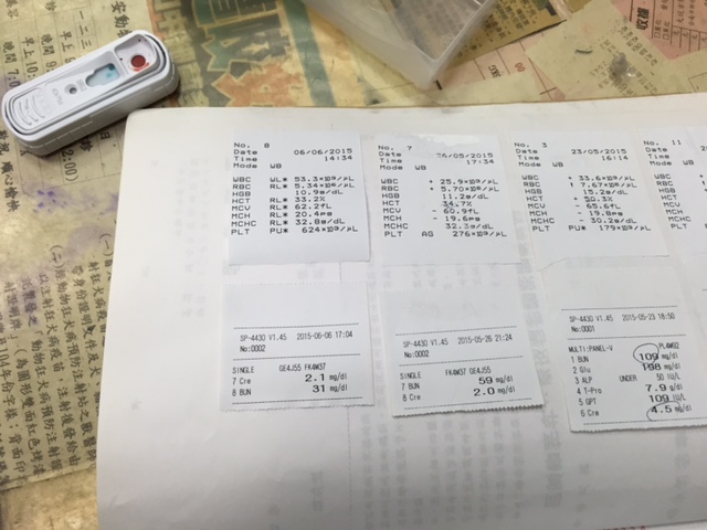 5/26精神比前兩天差,再度驗血,發現腎臟指數皆已下降,應該精神要變好才是,真是詭異