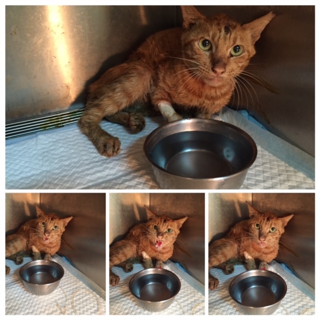 6/3-4:這兩天都沒上點滴了,食慾有慢慢進步,水喝得非常多,個性真的很兇悍,幾乎無法靠近,人類都怕他,但在市場跟其他母貓會彼此磨蹭,討厭另隻大橘公貓動物近況說明: 6/5狀況持穩,有自行進食