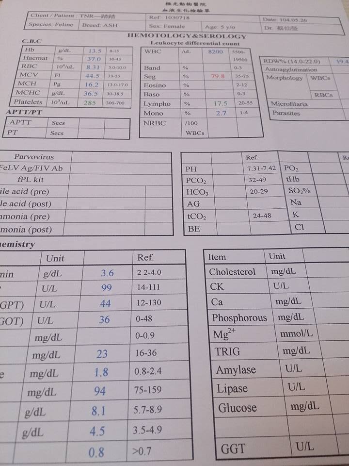 於2015/5/26再次回診拿藥,血檢結果肝指數降,醫生建議踏踏已不需再吃肝藥及肝處方飼料,真替她開心,