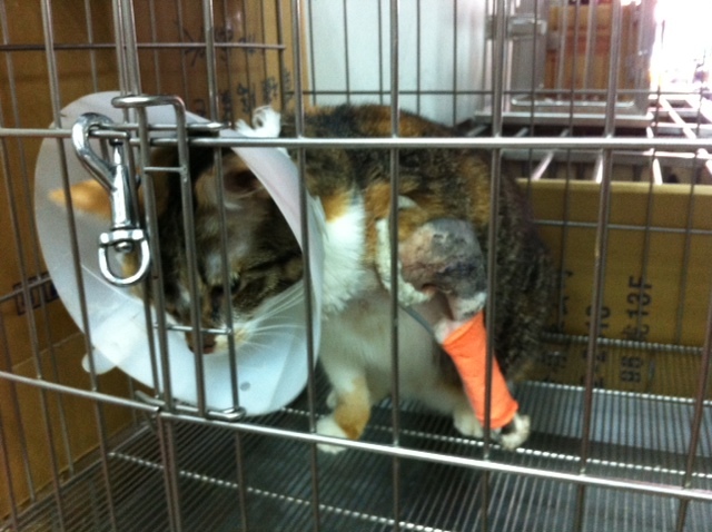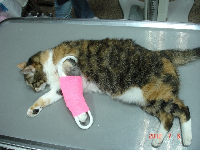 主題: 三花妹妹左手骨折脫臼 申請者姓名: 張嘉盈 花色: 申請日期: 2012-07-16 16:40:23 申請者部落格: 申請者臉書網址: https://www.facebook.com/media/set/?set=a.467340686611939.111247.100000080346180&type=3#!/photo.php?fbid=467341476611860&set=a.467340686611939.111247.100000080346180&type=3&theater 所在縣市/合作醫院: 新北市/五信動物醫院 治療費用: 35000元 需求人數: 38人 已結案 (2013-06-27 13:21:47) 報名人員: kelly(已付款)、Nico Liu(已付款)、won889(已付款)、高永顗(已付款)、valen、sandy_huanglichuan(已付款)、Clare Chen(已付款)、mimicat(已付款)、桑華、smountains(已付款)、Bei Bei Wang(已付款)、多蕊咪(已付款)、Irena(已付款)、rober(已付款)、maggie(已付款)、Diamond(已付款)、許盈仙(已付款)、Freya(已付款)、UNA、hide(已付款)、lucy(已付款)、許惠雯(已付款)、蠢蚱蜢(已付款)、Marquise Li(已付款)、玻利絲(已付款)、Pierce(已付款)、purism(已付款)、smilecat(已付款)、Juno388(已付款)、Veara Lin(已付款)、Slowsnow Hsu(已付款)、Kero Yen(已付款)、cenry(已付款)、OLivia Lee(已付款)、Juli Cheng(已付款)、amelie(已付款)、Ethan Chang(已付款)、anihhn(已付款)、董成瑜(已付款)、Albert、Giselle Hsieh、小舟、小舟、Emily Chou x2(已付款)、 候補人員: 動物病情說明: 三花乖乖是愛媽在餵養的浪貓,某天發現他的左腳畸形,本來醫師預以石膏固定,麻醉後推不回去,原來是罕見的連韌帶也斷裂,基於韌帶斷裂需要的手術耗材特殊,五信醫師特別向台大調耗材,約等1星期,期間邦乖乖坐止痛楚哩,6月初已植入鋼板固定,至今已換過3次固定版,目前恢復良好,約休養3個月就可痊癒,五信醫師特別給予浪貓醫療折扣優惠,目前仍在住院送養中,術前一星期(等待耗材的時間)及手術1個月之後的住院費用由救援志工自行吸收,懇請大家一同幫忙,也歡迎大家前往探視認養。