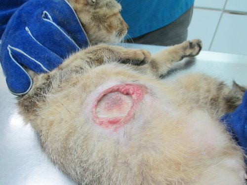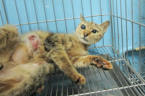 主題: 側腹潰瘍的虎斑母貓 申請者姓名: 蔡葦澄 花色: 申請日期: 2012-07-16 22:57:18 申請者部落格: 申請者臉書網址: 所在縣市/合作醫院: 台北市/欣旺動物醫院 治療費用: 8600元 需求人數: 21人 已結案 (2013-06-15 11:26:51) 報名人員: 王駝(已付款)、Viviann Wei(已付款)、煎塔媽(已付款)、煎塔媽(已付款)、Vickey Chang(已付款)、Grace Kulai(已付款)、caspper(已付款)、陳品萱、饅頭阿姨(已付款)、勇之助(已付款)、JUMI(已付款)、Kate Chou(已付款)、OLivia Lee(已付款)、Beck、Montana(已付款)、李映萱、Una、胡同貓(已付款)、小P(已付款)、Amber Tsai(已付款)、李映萱、Fabiola Lai、Jeane Tuan(已付款)、Bella(已付款)、凌君君(已付款)、小舟(已付款)、小舟、Pan(已付款)、 候補人員: 動物病情說明: 慈惠堂後門民宅附近發現的母貓,據發現的太太說,貓咪正在哺乳,小貓在屋頂夾縫,他是因為看見母貓傷口很深很大,帶來就醫,但是只能支付一千元費用,要求醫師縫一縫帶回去原地放,再多也無力負擔,但母貓的傷口很深,貿然縫合有可能內部會繼續潰爛,血檢後白血球過貓先施打抗生素,三天後手術縫合側腹的傷口,傷口很深只有薄薄的一層肌肉就到腹腔,因考慮貓咪身體虛弱先手術清創縫合沒有馬上結紮和縫合疝氣,調養4周狀況穩定已手術結紮並縫合疝氣,目前狀況良好,預計本周六出院,原本發現的太太支付1千元醫療費,其餘費用還請各位幫忙