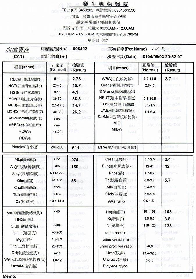 今天6/12剛好休假~家裡的貓順便回診~~也順便過去了解一下小小虎的狀況~~