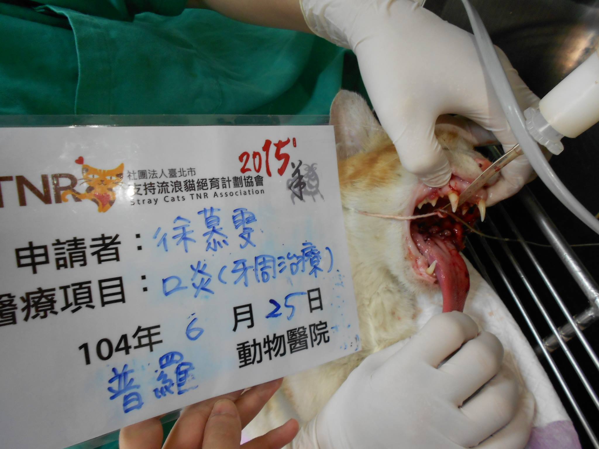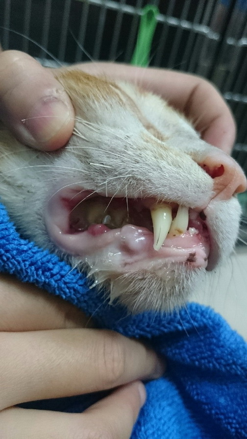 牙齦的部份有異常增生,不確定是否為腫瘤,目前由我帶回家居家照顧,並觀察這孩子的後續狀況。