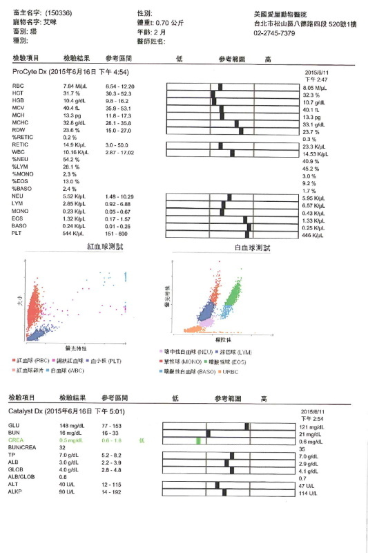 6/23艾咪出院嘍,感謝美國愛屋動物醫院全體醫師及助理細心照顧
