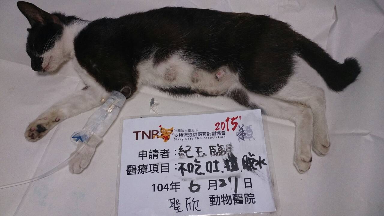 主題: 敗血症剛生產母貓 申請者姓名: 紀玉臨 花色: 申請日期: 2015-07-09 19:58:59 申請者部落格: 申請者臉書網址: https://www.facebook.com/profile.php?id=100004068841859 所在縣市/合作醫院: 台中市/聖欣動物醫院 治療費用: 5200元 需求人數: 7人 已結案 (2022-05-13 15:06:47) 報名人員: 冰貓(已付款)、Carrie Wu(已付款)、Alada Meow(已付款)、Anita Cheng(已付款)、Emily Kuo(已付款)、Nicoletta Fon Fon(已付款)、黃貓咪(已付款)、 候補人員: 動物病情說明: 這隻母貓(小黑)跟上午通報的醫助案(標題:舌尖潰瘍、路倒脫水虎斑)的小毛瓜同樣是在鄉下固定餵養的浪貓。小黑約在一個月多月前生產 ,這幾天也是突然沒有什麼食慾,到今天(6/27)下午發現她癱軟無力,上吐下瀉,吐出膽汁,拉到迴蟲都出現了,只好緊急送到動物醫院檢查。經過醫生檢查後發現除了脫水,有敗血症情形,白血球低到600,胰臟也有問題,情況不是很樂觀。醫生預計讓小黑住院治療七天。推想小黑與小毛瓜應該是誤食有毒物質。關於小黑的小貓(約六周大),這段時間我們會餵食他們泡軟飼料與幼貓用奶粉奶水,希望小黑能回來與他們相聚。