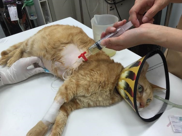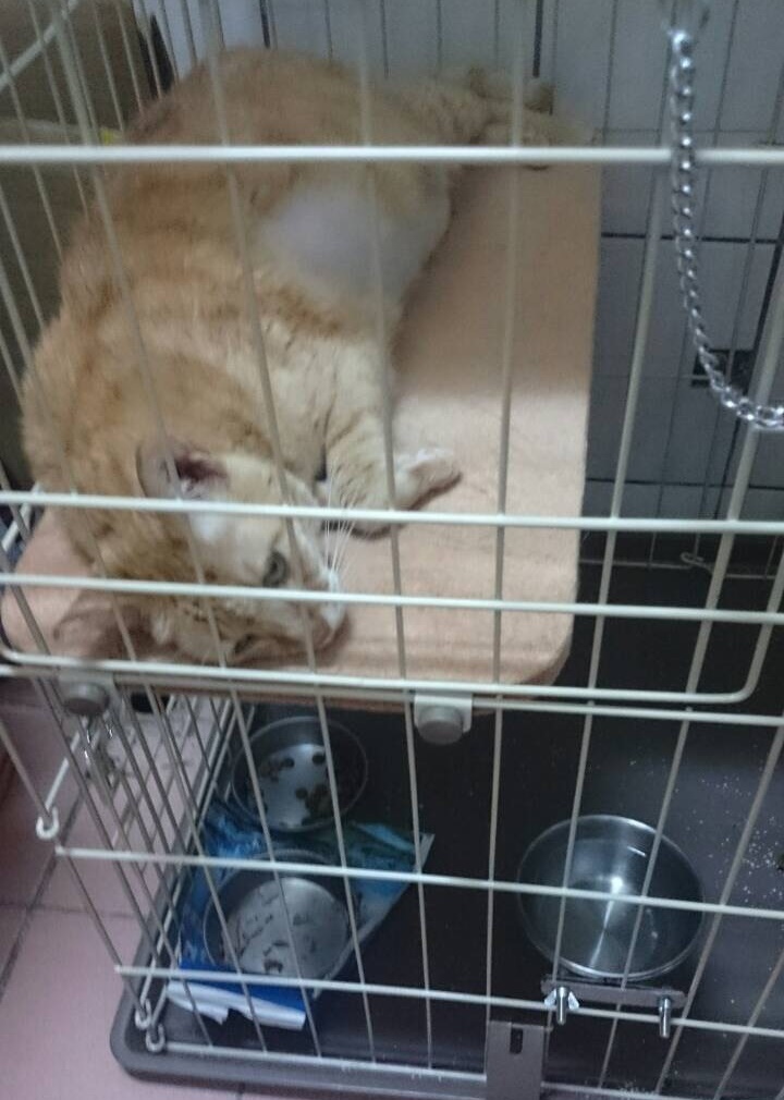 乖咪是李姐餵養區的貓,年紀大約10歲,母,1歲左右結紮,也是李姐餵養的元老之一,於3月中後察覺食慾減退、活動力變差,腹部日漸鼓脹。因經濟能力不佳,實在無力負擔醫療。直至近日小橘幾乎沒有食慾,遂於4月23日送去永和中山獸醫院進行檢查。