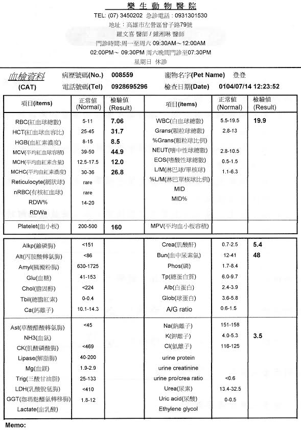 白血球及腎指數都過高且血鉀過低,