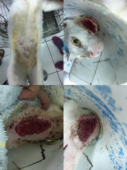 主題: 子宮蓄膿及左下側臉腫脹之母白貓 申請者姓名: 許桂菱 花色: 申請日期: 2015-07-22 00:15:59 申請者部落格: 申請者臉書網址: 所在縣市/合作醫院: 彰化縣/成愛動物醫院 治療費用: 11350元 需求人數: 13人 已結案 (2022-05-13 15:09:01) 報名人員: Ivy(已付款)、cathy(已付款)、Zola Cheng(已付款)、曾馨賢(已付款)、garychen(已付款)、呂小嬅(已付款)、Vincent(已付款)、詩詩(已付款)、bearishym(已付款)、Alison Cheng(已付款)、Rubyhsu(已付款)、sharonalwu(已付款)、安久貓(已付款)、 候補人員: 動物病情說明: 原本於6/29晚間誘捕抓紮,原本只是做結紮手術,但施行側腹手術時陰部流膿,照超音波後發現應為子宮蓄膿,進行血檢與生化檢驗,貓愛滋及貓白血雖為陰性,但白血球指數過高,先施打長效型消炎針,另外還發現左臉側有膿腫傷口,也進行膿血抽出!