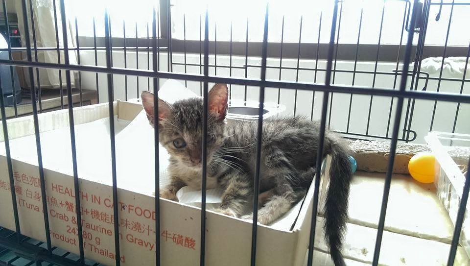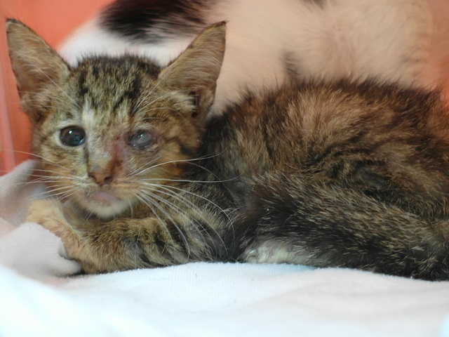 7/31當天晚上9時左右接到醫生來電告知,白耳(白底虎斑)仍不敵病魔走了,去當小天使了,(死因:嚴重貓鼻氣管炎及營養不良),襪襪(小虎斑)情況開始好轉,會自己吃東西喝水雖然精神及活動力仍不佳,點點(白底三花)及襪襪(小虎斑)右眼仍有增生膜覆蓋。