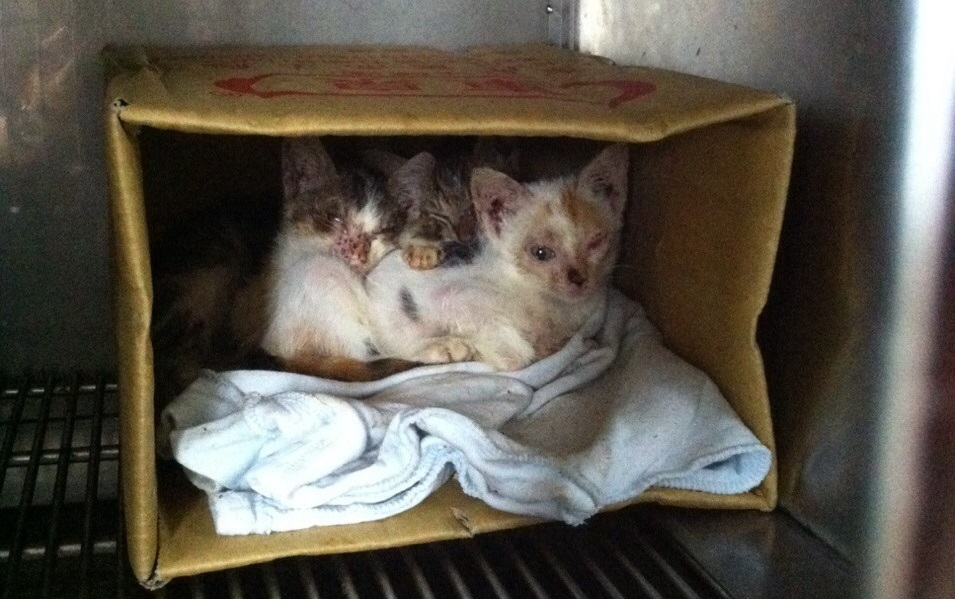主題: 嚴重感染的三隻小貓 申請者姓名: 秦懷汶 花色: 申請日期: 2015-08-21 21:34:50 申請者部落格: 申請者臉書網址: 所在縣市/合作醫院: 新北市/福林動物醫院 治療費用: 9470元 需求人數: 11人 已結案 (2022-05-13 15:08:38) 報名人員: May(已付款)、Sunny Lee(已付款)、Ting Huang(已付款)、lunyi、moca(已付款)、楊正旭、斑比(已付款)、Wendy Lao(已付款)、吳毓軒(已付款)、nami x2(已付款)、Amelie(已付款)、tomo(已付款)、 候補人員: 動物病情說明: 發現三隻小貓咪時大約4周左右,當時生病已經很嚴重,小貓們不斷打噴嚏、流鼻涕及眼睛紅腫又眼淚滿面,而且走路不穩歪斜病懨懨,趕緊送醫檢查。