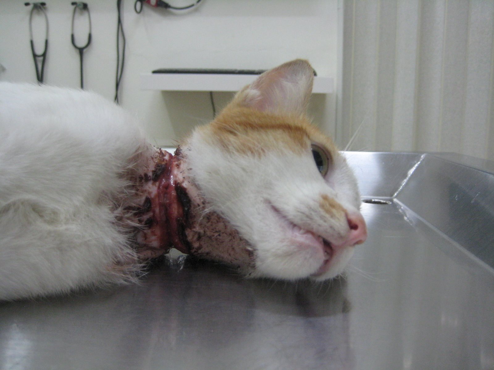 看到貓咪脖子好像有傷口,
