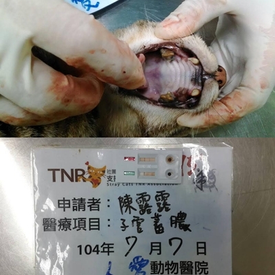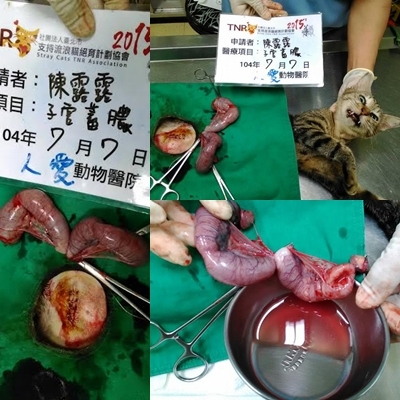 7/7送醫後醫生於結紮手術中發現斑妹子宮已腫大蓄膿、卵巢水腫,