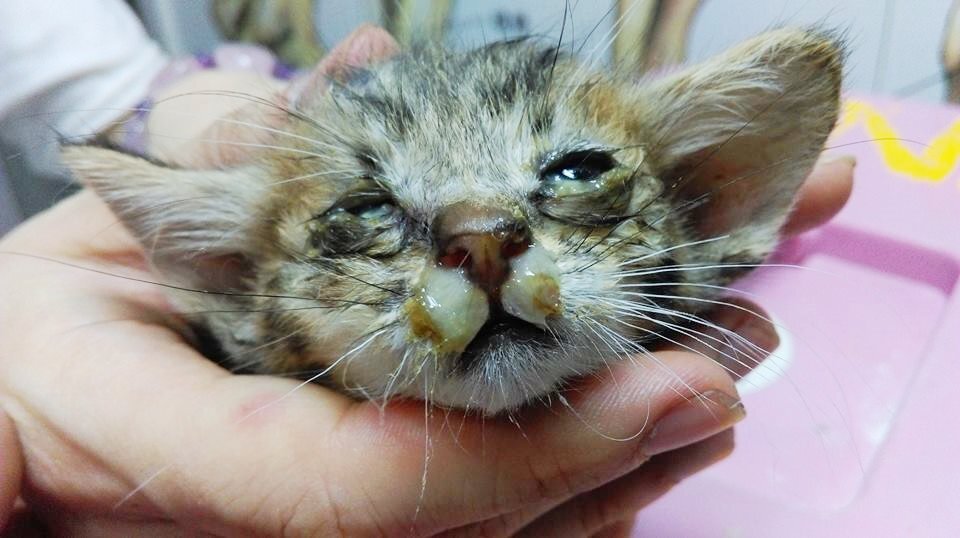由於吃不好、吃不飽,山區氣候濕冷,看到的小貓九成都有上呼吸道感染、眼疾等問題,多數的貓都無法健康長大…