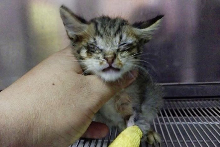 小花和小虎臉糊成一團,鼻膿眼膿非常嚴重,都仰頭呼吸,摸起來冷冰冰非常危急,醫師上點滴補充水分保溫給予抗生素治療,當晚小花開始拉血,精神變的極差,隔天就當小天使…小虎斑比小花狀況更糟,但他很努力跟生命拔河,但這些日子他最喜歡醫師幫他擦擦臉和摸摸她的身體,老是往醫師手裡蹭、吸醫師的手,抱得緊緊的,好像把醫師當作媽媽,小虎斑還不會自己吃東西,都靠醫師灌食一點一滴的慢慢吞,本來狀況越來越好卻不敵寄生蟲造成的腹瀉,狀況急轉直下最後還是飛走了,這段日子很謝謝醫師們細心的照顧,讓小虎在有愛的地方離開,醫療費用還請大家幫忙。