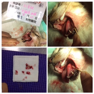 徵詢醫生建議再度入院拔除其它後排牙齒,只保留犬齒,並將口腔內反覆發炎組織送檢,確定組織是否有異狀,又瑪莉蓮今天在醫院有血尿出現,之前帶她出院休養也曾出現過一兩天,會照超音波檢查,尿液會做細菌培養檢查