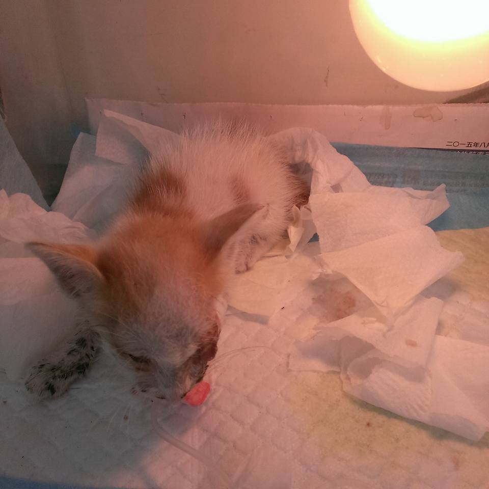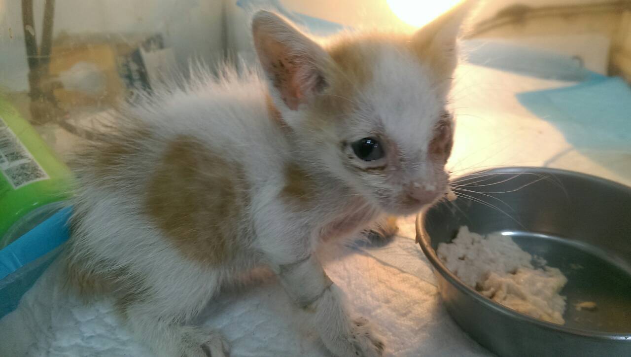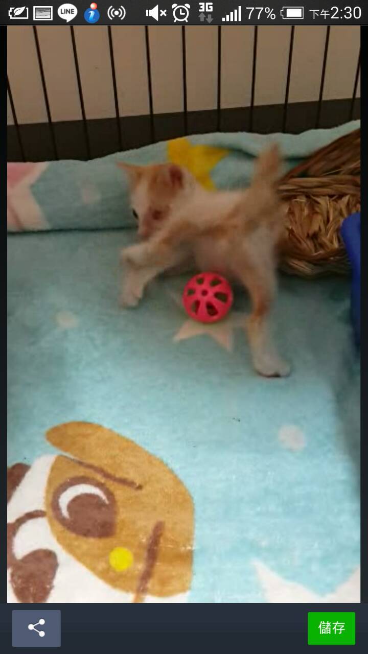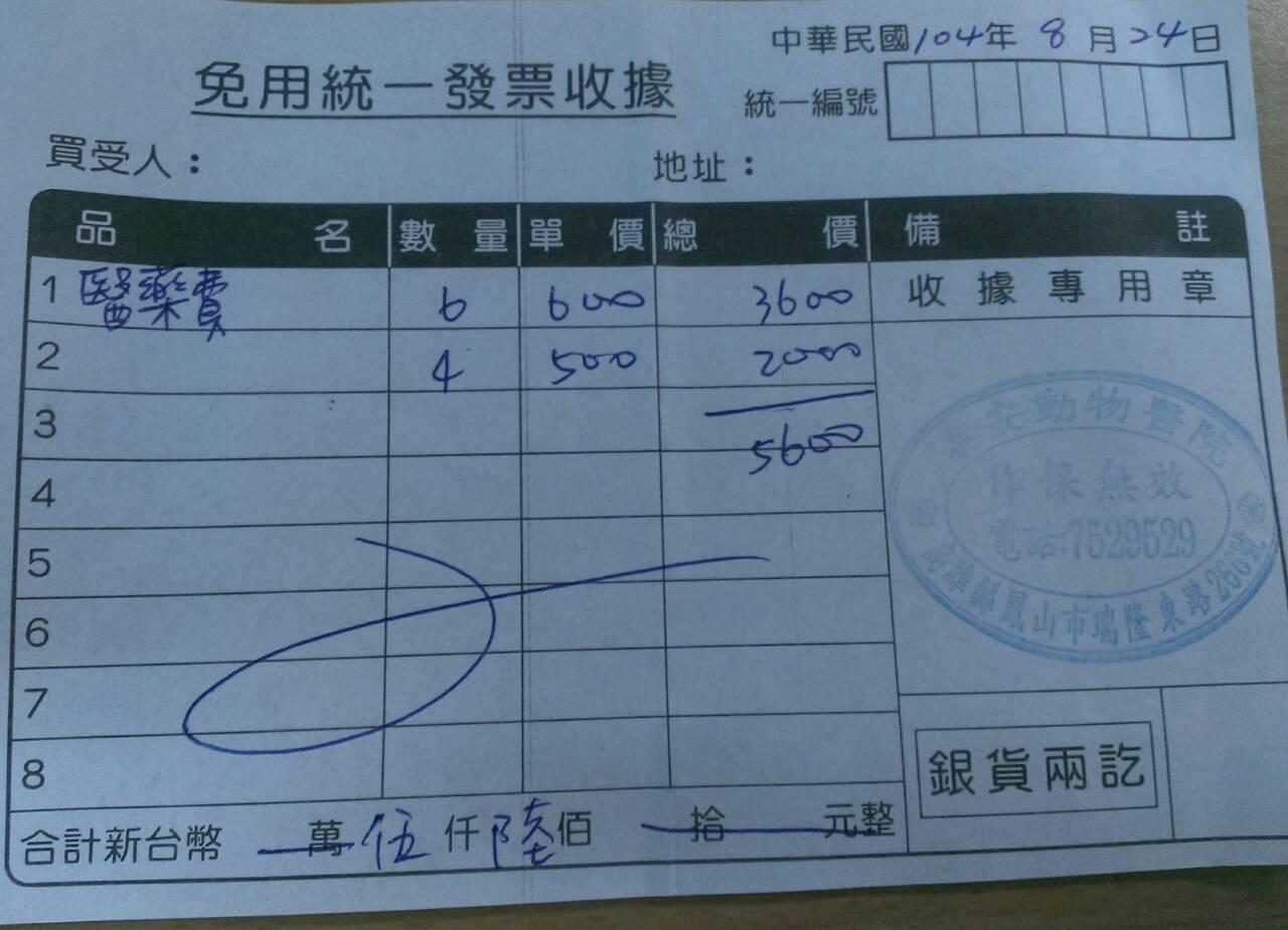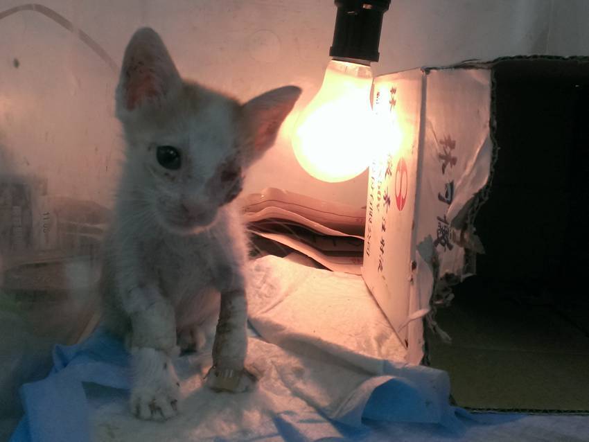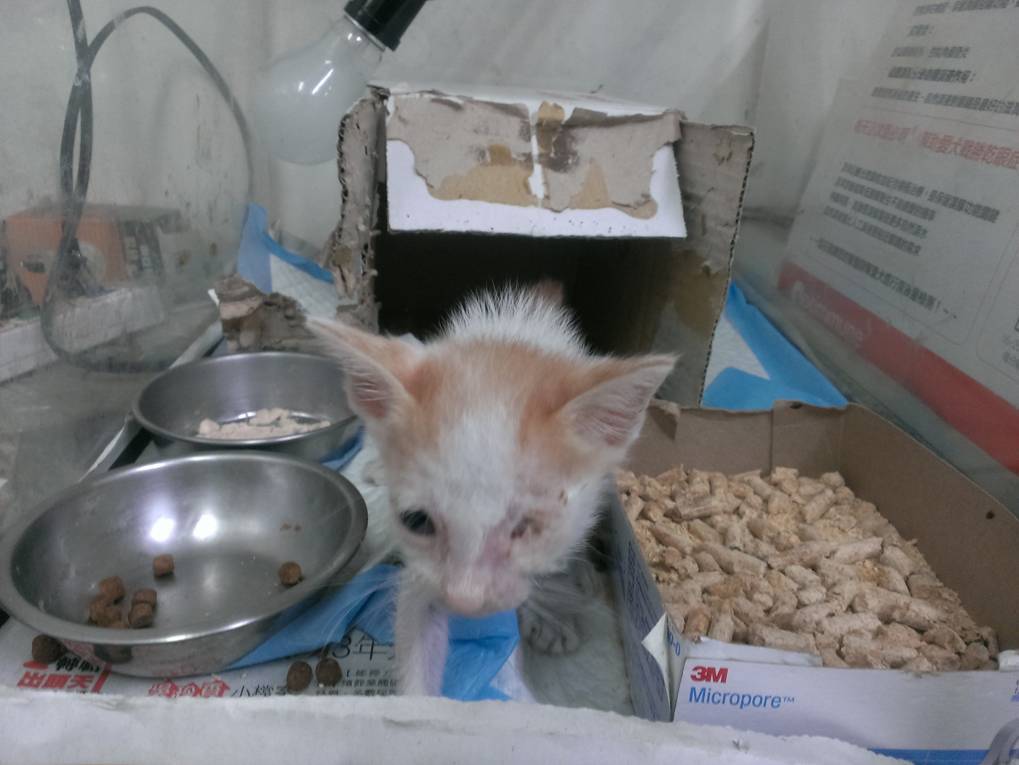 主題: 剩模糊一眼的受傷小花貓 申請者姓名: Fat Li 花色: 申請日期: 2015-08-25 11:31:26 申請者部落格: 申請者臉書網址: 所在縣市/合作醫院: 高雄市/泰安動物醫院 治療費用: 5600元 需求人數: 6人 已結案 (2022-05-13 15:07:43) 報名人員: 林小豬(已付款)、藍貓(已付款)、詹嘉祥(已付款)、Yixiun(已付款)、Lawrence x2(已付款)、 候補人員: 動物病情說明: 8/15騎了不同路去載男友,途中看到一隻小貓,狀況不好...以為他已經過世,想說載完男友要回頭幫他善後。但接近一看他孱弱的爬著眼睛部分腫脹流濃,我馬上帶去給泰安醫院給獸醫看後是嚴重感染,已經失去一個眼睛,而另一個眼睛視力會受損,嘴巴附近也有破洞,呼吸道感染,目前住院中。因為他體重只有300g,醫生不建議現在摘除眼球,但他不吃東西(有發牙了),所以現在只能打廣效性抗生素和打點滴及小量多次灌食,等待他體力恢復再進一步治療,當下救他和不救他之間掙扎....選擇了救他,但接續而來的住院費用以及照養,也是一大壓力,這是我第一次救援貓咪,當天高雄晚上下了一場暴雨後,我心想我做的好,但還是有點徬徨不知道怎麼幫助這隻小貓,我開始找他的認養人,我在奶貓救援隊fb貼文,有ㄧ位康小姐願意出院後認養他,心裡大石頭也放下了,但接下來要住院兩個禮拜在觀察,醫療費用我真的太有壓力,希望能請大家幫忙,泰安醫院的獸醫,因為我是撿流浪貓去救,所以住院一天算我600元,必須至少住院14天,加上之後的動刀摘除眼球手術,龐大的金額讓我真的負荷不來,真心希望大家幫忙這隻小貓。 動物近況說明: 小貓在8/15禮拜六,下午送醫後清膿瘡,發現左眼球失去水晶體狀後確定左眼無功能,右眼球有膿包,去膿後畏光,但眼球球體完好,右嘴邊感染有些許破洞,呼吸道感染,瘦弱,住在保溫箱中。初步治療為打點滴、抗生素,滴眼藥水,因不吃東西,所以多次小量灌食。8/16禮拜日,依舊虛弱無法站立,右眼腫脹無法全開,脖子右側有膿包。8/17禮拜ㄧ,右眼消腫可以張開,眼角有小薄膜,依舊不主動吃東西,打點滴灌食,滴眼藥水,左眼化膿量減少,但活動力有上升。8/18禮拜二,看護人員餵食肉罐,不願意食用但未食肉泥願意食用,但只吃兩口,故依舊需要灌食,右眼有神,左眼眼球慢慢萎縮,化膿量減少,活動力不錯。8/19禮拜三,活動力不錯,願意主動吃肉泥,但一樣打點滴,滴眼藥水。8/20禮拜四,活動力很好,開始會跑跳,不用點滴,手上有留滯針頭,開始大吃肉泥。8/22禮拜六,非常活潑,會自己食用肉泥,也會使用貓砂了,左眼流膿量很少了,漸漸癒合。8/24醫生建議小貓可以出院,自行照顧了,只要每天幫他滴三次眼藥水,定期帶回打針,就可以了。且爆掉的左眼有慢慢萎縮,慶幸不用在他小小身體上動刀。右眼尚有小薄膜,但看得到,身上的感染也慢慢痊癒。現今是個活潑搗蛋的小貓,當天晚上9:00願意領養他的康小姐,跟我一起接他出院,把他取名叫阿肥,希望他能忘掉流浪的日子,在關愛下吃的肥肥胖胖的,現在雖然身上還有跳蚤,但毛髮也漸漸濃密,是個漂亮的孩子!