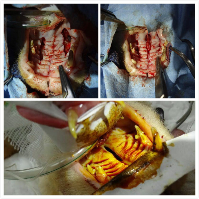 因為合合傷口正好是在口腔~~合合會去舔~因為口水畢竟有細菌~所以目前這兩個月的時間都只能先清理傷口化膿的部分~和調養合合的身體~