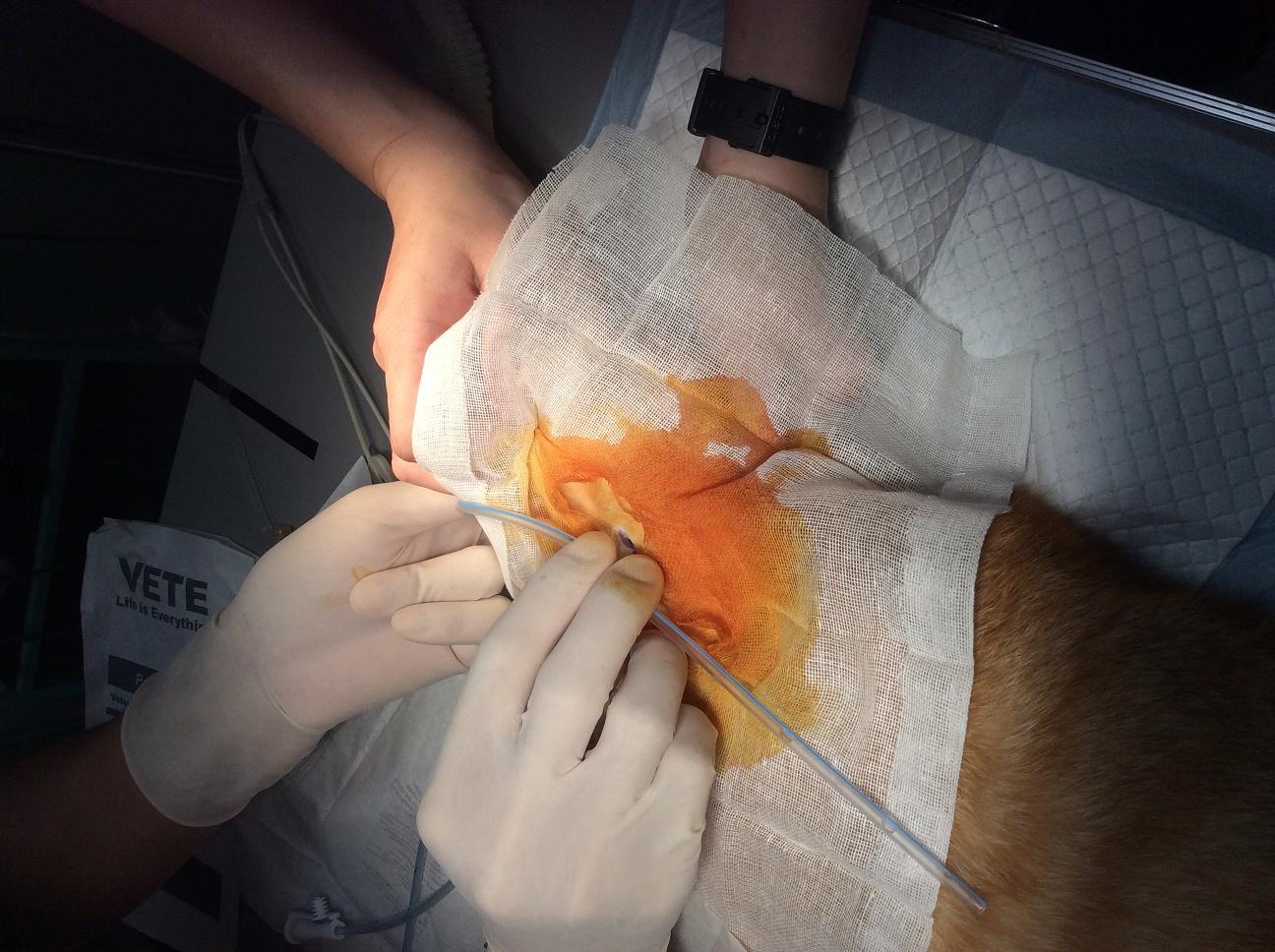 8/27因為奶茶吃很少,而且不好餵藥,醫師說裝胃管灌食可以恢復得比較快,所以就幫奶茶放食道胃管,療程目的就是等牠腎指數穩定下來就可以出院自行照顧了。