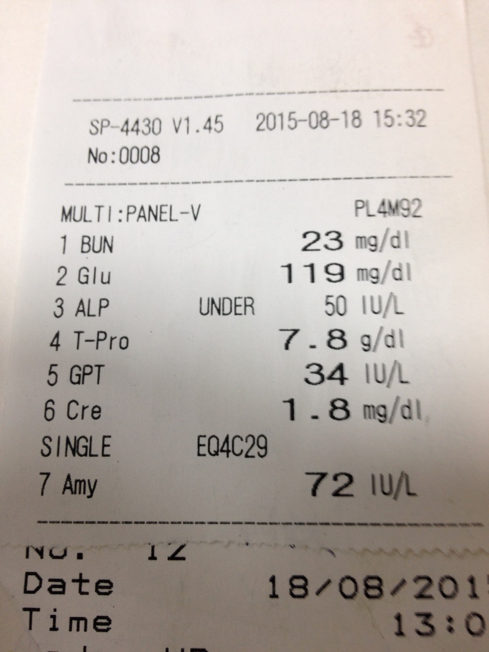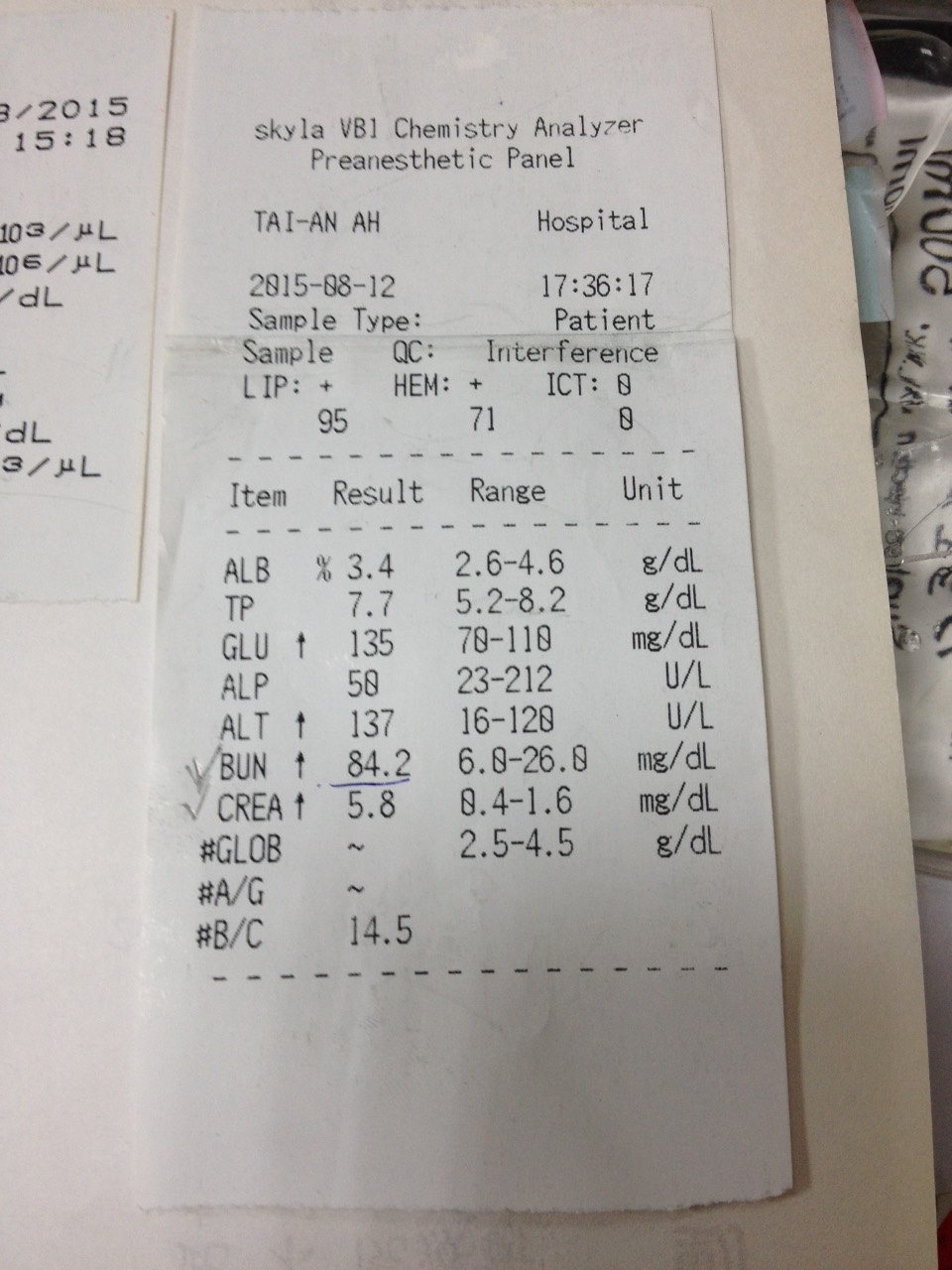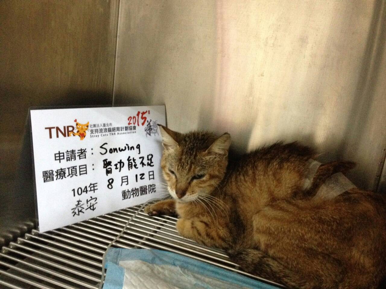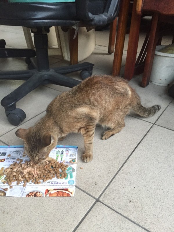 大妞先進行結紮手術,但之前餵食牠時,感覺牠很瘦進食又慢,看起來嘴部腫大,原先懷疑有口炎之類的問題,結果手術後追加血檢和視診,發現牠可能年齡不小,牙齒已經掉到剩1根,而血檢結果腎臟指數比較不理想,故住院期間擬再進行點滴治療,希望可改善一下牠的腎臟問題,牠出院後,會和老闆娘溝通改用處方飼料餵食。動物近況說明: 大妞在住院一週後,腎指數終於降到正常範圍了,於是把她接回出院,由於她已經養成在神壇阿姨那邊進食的習慣,所以小乖已經決定每月提供KD處方飼料放在神壇阿姨這邊。大妞也每天下午出現進食和喝水,目前狀況良好。