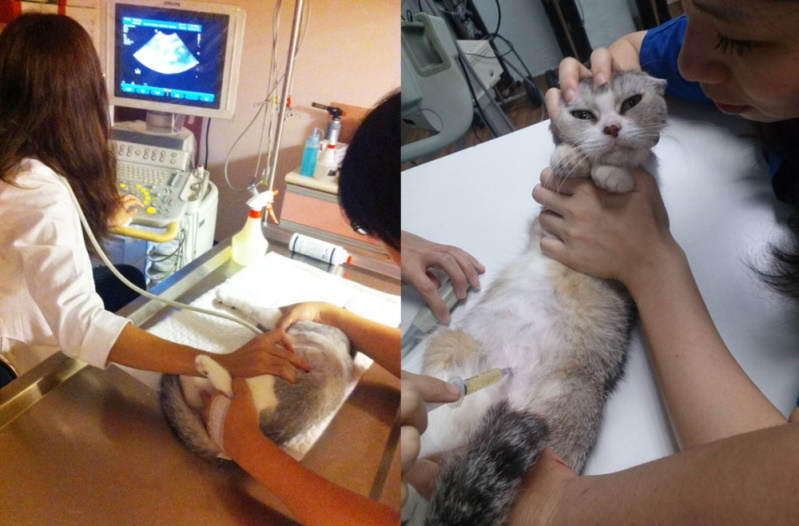 隔天早上狀況急轉直下,小甜甜顯得非常不舒服,複驗胰臟炎呈陽性,醫師研判之前可能是輕微慢性胰臟炎試劑驗不出來,手術後大爆發,先輸血漿一袋,若狀況往下掉需要緊急輸血,小甜甜狀況時好時壞,血溶比也上上下下,第七天醫師通知必須要輸血保命,帶著協會小壯丁管管、黑格爾,ㄚ誠還有貓志工的愛貓小胖子到院配血,結果由管管配血成功捐血給小甜甜,輸血後小甜甜看起來比較有精神但還是一直窩著,堅強的小甜甜耐過胰臟炎,不舒服嘔吐的狀況慢慢趨緩,拆了點滴進食量維持,體重也慢慢增加,但醫師發現小甜甜呼吸偏喘,進行心臟超音波檢查,發現他有很嚴重的心臟問題,有可能會猝死必須服藥控制。