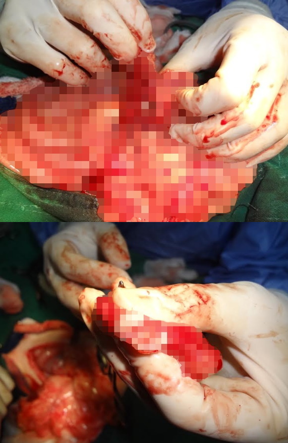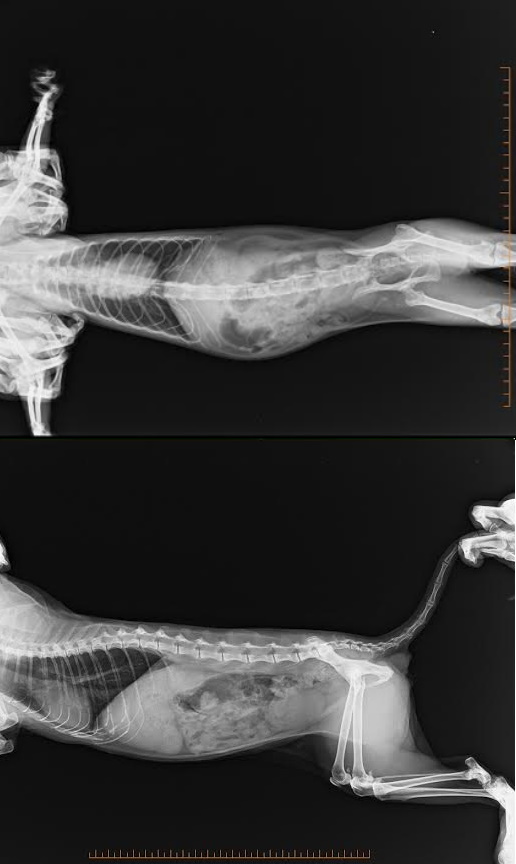 術前做了胰臟炎試劑檢測(陰性)和腹腔超音波,均無看到胰臟有發炎狀況,血檢後進行手術,開腹後發現腹腔沾黏嚴重,撥離後膀胱附近找到腫塊,而左側卵巢包裹在腫塊內,有異常增生的大血管連接後腔靜脈和左側卵巢,還有豐富血管延伸至脾臟,因卵巢分泌荷爾蒙造成刺激,所以造成持續漏尿 ,血管異常有可能是先天畸形,而異生的血管和胰臟相近且可能相通,擔心會有慢性胰臟炎的狀況發生,手術當天,小甜甜看起來有點倦,但還願意自己吃東西,給與嗎啡類止痛劑,讓疼痛比較疏緩一點。