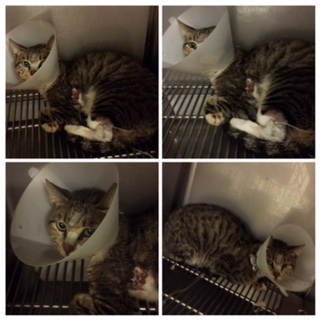 主題: 左前肢外傷嚴重感染組織壞死的浪咪 申請者姓名: 張靜柔 花色: 申請日期: 2015-10-01 14:41:03 申請者部落格: 申請者臉書網址: 張靜柔 所在縣市/合作醫院: 高雄市/弘恩動物醫院 治療費用: 31600元 需求人數: 33人 已結案 (2022-05-13 15:10:15) 報名人員: 翊小榛(已付款)、annie、pp、陳吉寶(已付款)、pp、pp、蘇洛克(已付款)、橘子貓(已付款)、我愛摺耳貓(已付款)、Felina(已付款)、J M(已付款)、硬邦邦(已付款)、Joyce914(已付款)、張思敏(已付款)、'Ki Wong(已付款)、Kiki(已付款)、lavinia x2(已付款)、Alisa Huang(已付款)、斑比(已付款)、斑比、Jack Wei(已付款)、何瑋樺、徐小安 x2(已付款)、Norman Wu(已付款)、小可(已付款)、Rebecca(已付款)、俋思國際有限公司(已付款)、Jasmine Lin(已付款)、皓子(已付款)、菲小比(已付款)、Bobo Li(已付款)、徐小安 x2(已付款)、lavinia x3(已付款)、郭玄(已付款)、 候補人員: 動物病情說明: 原本的餵養點出現新貓咪,尚未結紮,看到他在吃廚餘,要引誘他吃飼料意外發現左前肢受傷,腳懸空用跳的,且角度很詭異,隔天又看到受傷處後面有開放性傷口很大很深,戒心很重,不好靠近,經過一週的誘捕才因體力不支誘捕到