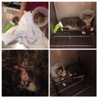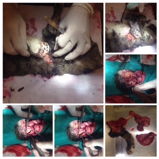 詢問傷貓狀況是否適合做結紮,評估過後在麻醉檢視傷口後施行結紮。
