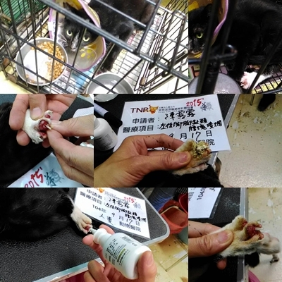 主題: 腳掌腫傷忍痛奶大三幼貓之貓媽 申請者姓名: 陳露露 花色: 申請日期: 2015-10-06 09:42:57 申請者部落格: 申請者臉書網址: https://www.facebook.com/profile.php?id=100000720481202 所在縣市/合作醫院: 高雄市/人愛動物醫院 治療費用: 7155元 需求人數: 8人 已結案 (2022-05-13 15:09:53) 報名人員: vivian(已付款)、高小貓(已付款)、林琦(已付款)、無名氏(已付款)、侯爺.絲茉茉(已付款)、EFan Shuai(已付款)、Hong Winnie(已付款)、晴天貓咪(已付款)、 候補人員: 動物病情說明: 此為愛媽通報協助抓紮之仁智青年專案