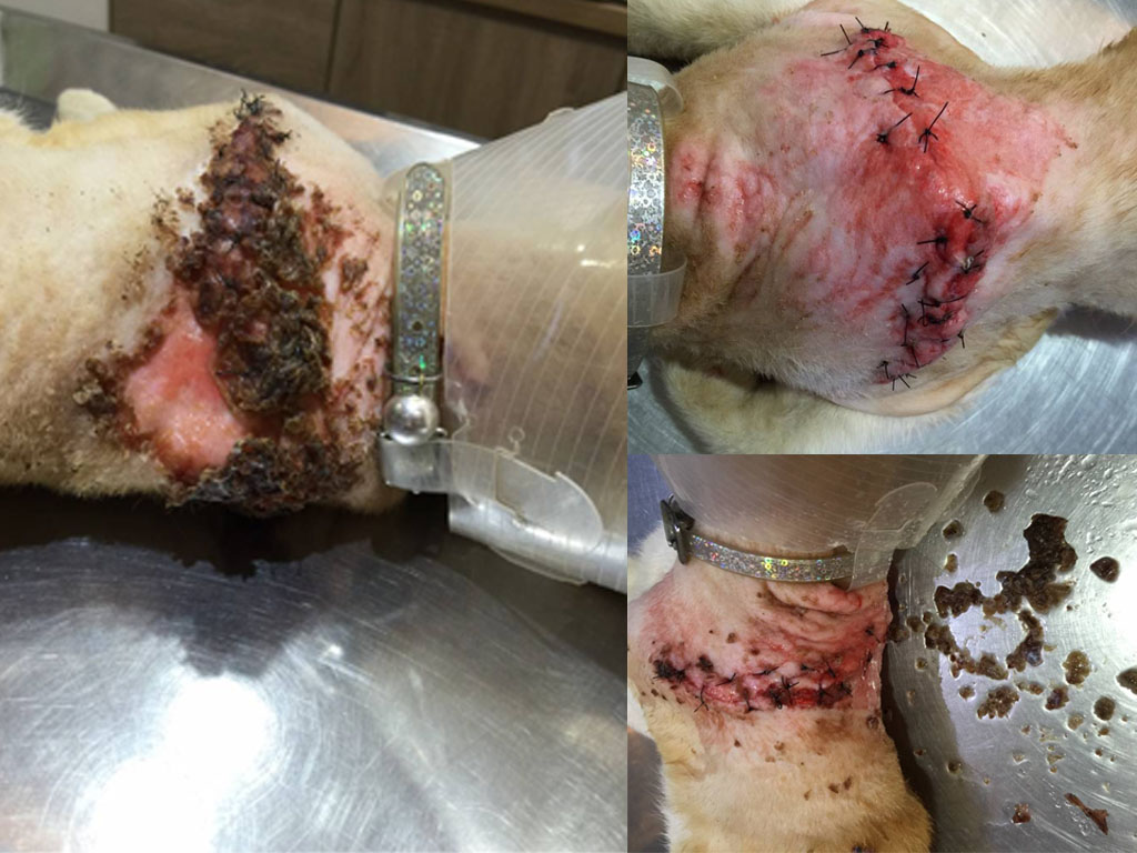 9月19日,醫師再次進行傷口的清創縫合,依舊配合用藥,還好貓咪的精神,食慾都不錯,所以能持續吃藥,傷口癒合的情況也較佳,但是因為貓咪是愛滋貓,所以其實不只受傷的部分,其他皮膚的狀況都不是很好,在治療的時候貓咪會一直帶著頭套,容易因為拿下頭套清理傷口時稍微的抓癢而抓破皮,這方面,醫生也會特別注意和較頻繁的處理傷口,以免讓狀況惡化。