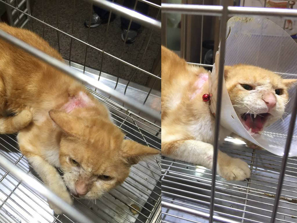原先在11月中就可出院,但要接貓咪時,發現貓咪把自己抓傷,於是又繼續留院治療,於是醫生用藥但不帶頭套了,讓貓咪能夠停止抓咬,幾天後,貓咪抓咬的狀況好轉,就等待傷口癒合就確定可以再次放回。