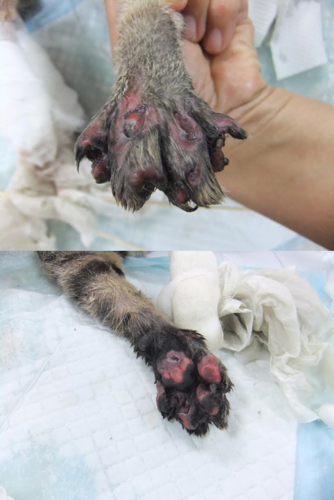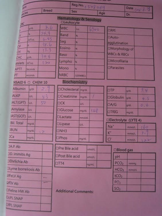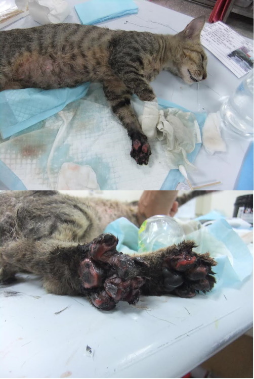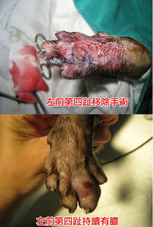 主題: 新莊收容所帶出四隻腳掌潰瘍的小皿 申請者姓名: 臺北市支持流浪貓絕育計劃協會 花色: 申請日期: 2015-09-16 19:11:22 申請者部落格: 申請者臉書網址: 所在縣市/合作醫院: 台北市/內湖維康動物醫院 治療費用: 36620元 需求人數: 38人 已結案 (2022-05-13 15:09:39) 報名人員: Emily Hsu(已付款)、Gary Chen(已付款)、水凌 x2(已付款)、Sunny x5(已付款)、許凱特 x2(已付款)、LILY x2(已付款)、orange(已付款)、王千枝(已付款)、曹惠美(已付款)、Fay Huang(已付款)、Irene Hu x2(已付款)、滋滋、王可樂的日語教室(已付款)、茶課啊(已付款)、Jammy Queen(已付款)、ERic YU(已付款)、Mimi Liu(已付款)、Roxy Hu(已付款)、Yen-Yuan Wang(已付款)、尖牙小貓咪(已付款)、888(已付款)、Anita Tung(已付款)、花米龍(已付款)、asher、小羽 x6(已付款)、Lia(已付款)、小可(已付款)、 候補人員: 動物病情說明: 新莊收容一隻四肢受傷、腳趾脫落嚴重潰爛的貓,所內醫師苦無對策,希望協會幫忙送醫照護,若不小心處理感染擴散有可能保不住腳,帶出就醫檢查,腳掌正面反面都有傷口,疑似車禍嚴重拖行造成的傷害,貓在所內非常的緊張,清創治療都是用麻醉的方式,兩天清創一次非常頻繁,照x光時發現懷有身孕,但吃這麼多抗生素和這麼多次的麻醉,胎兒恐早有影響,很多抗生素都會影響胎兒發育,避免任何風險,很遺憾但也只能盡量保全大貓的安全,手術進行左前肢第四趾全指去除手術,並做傷口細菌培養,厚包紮固定9/2右前肢還是反覆發炎化膿因貓咪一直處於很緊張的狀況,藥加在罐頭內也不太願意吃,只好注射長效抗生素,狀況穩定精神食欲胃口良好,目前已帶回安養之家照顧,醫療費用還請各位幫忙。