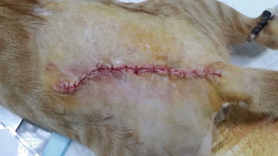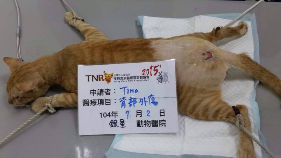 後來跟貴協會的志工討論決定還是進行縫合,畢竟我只有TNR的經驗,還未有自行替街貓餵藥、擦藥的經驗,深怕到時候失敗,故而向協會申請醫助。
