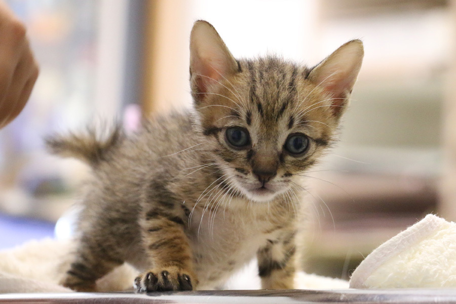 9/25左後腳敷藥紗布取下,傷口血紅肌理組織部份明顯縮小,外圍開時長出皮,繼續塗幫助肉芽生長的藥劑包紮,右腳小結疤,繼續以藥劑擦拭傷口外圍;一餐可自行食用40顆幼貓飼料,因出現愛咬東西的狀況,嘗試食用未泡水的幼貓飼料一餐可食用15~18顆硬,22~25顆半軟飼料,另補充一些水,一天約食7餐,順利排大便3次(已無出現白點,排便為條狀)及尿水3次.開始喜歡跟人行走,無人陪伴時會呼叫.