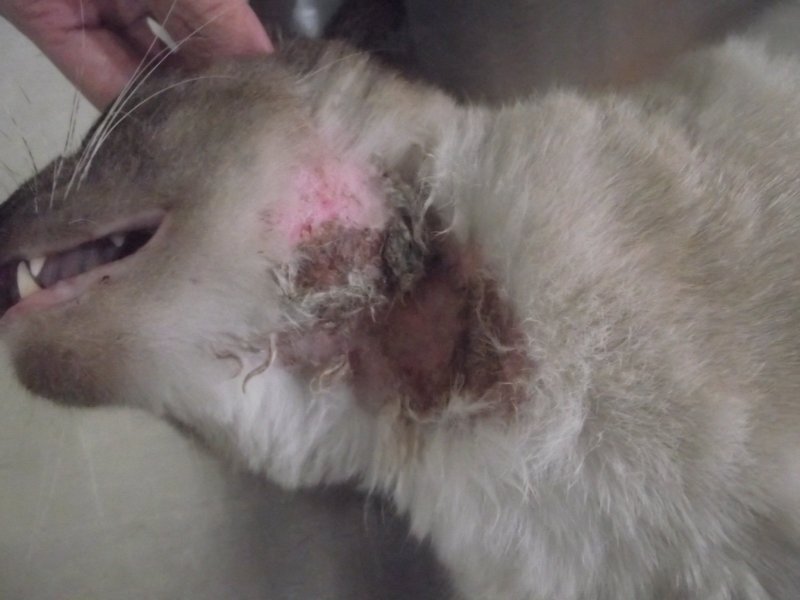 混暹羅這貓則是萬華地區志工郝先生於去年10月24日誘捕結紮的貓,助紮編號為:1302號,放回後於日前,發現脖子有傷口,又誘捕進至醫院治療,醫師檢查發現只是溼疹,需要乾燥環境,於醫院住院一星期,並給於投葯後,症狀改善再放回原地。